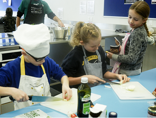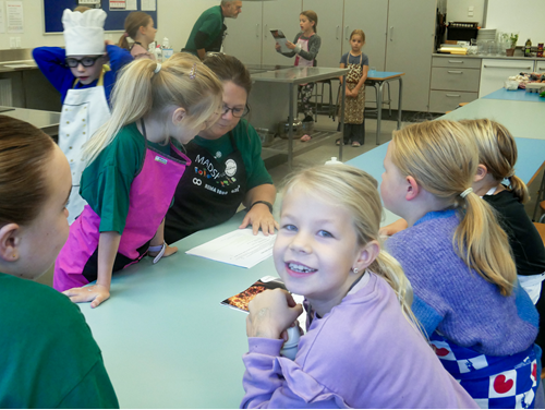 Frivillige på 25+ Madskoler stod mandag i uge 42 klar til at modtage de mere end 400 tilmeldte børn på 3 Dage med Madskoler. Over 3 dage indtog børn og frivillige køkkenet og sammen æltede, bagte og stegte de sig igennem fuldkornspizza, æggesalat, indisk kartoffelgryde og meget mere.