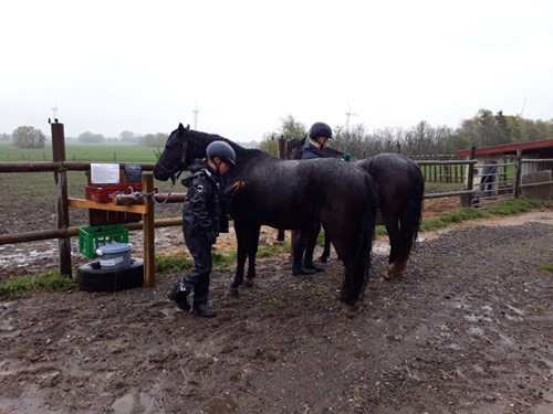 Hun har haft travlt med at vaske 20 portioner udstyr til gårdens heste, desinficere det og lave såkaldte striglestationer med udstyr til hver enkelt hest, så det bliver holdt adskilt. På gårdens parkeringsplads er der også blevet sat skilte op, hvor der står ”Kiss and ride”. Da der kun må være 10 personer på gården ad gangen, er der nemlig ikke plads til, at forældrene kan komme med ind til rideundervisningen, som de ellers plejer at gøre.