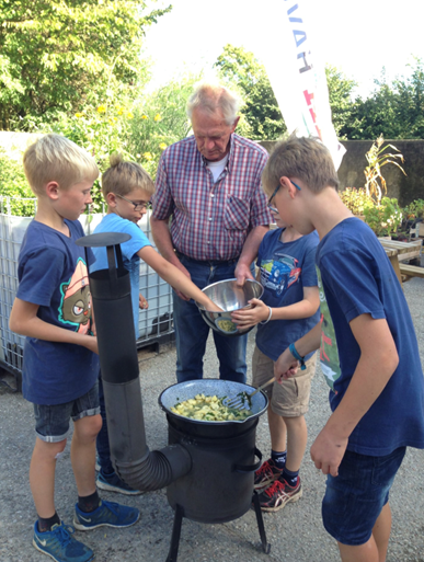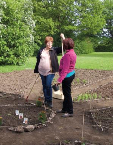 Gennem de seneste tre år er fælleshaven vokset, så der nu er otte familier, der tirsdag i hver anden uge mødes for at luge i jorden sammen med byens ældre. Her er det ikke kun det grønne afkast, der trækker, men også fællesskabet i haven, hvor man lærer hinanden at kende på tværs af alder og beskæftigelse.