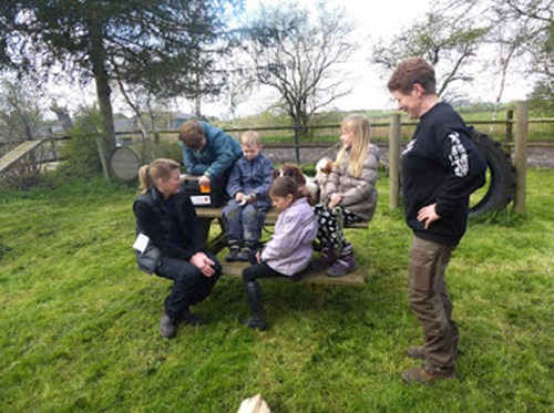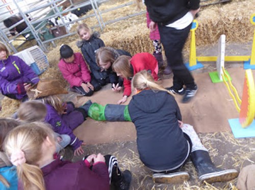 De børn der ville høre om kalve var på udflugt til en gård på Stevns, der havde åbnet sine døre for Klar-Parat-Dyrskue deltagerne.
