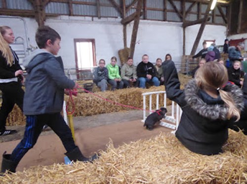 Mern 4H havde taget deres kaninhopbane med, som Therese og Sofie gennemgik, inden børnene fik lov at prøve. Der blev vist hvordan marsvin også kan lege. Hundebørnene lærte hvad det ville sige at være aktive med sin hund, teori omkring en hund, og de legede de selv var hunde på agilitybanen på 4H gården.