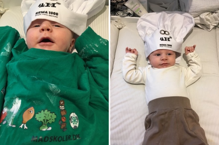 Siden blev Charlotte og Mathias kærester, og nu har de fået deres lille søn, Hans Christian Gabel Nørskov – og som du kan se på billederne, er han en rigtig madskolebaby. Både kokkehue og T-shirt har Mathias og Charlotte gemt fra da de mødte hinanden.