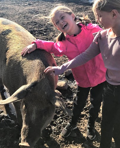 På gården er der blandt andet marsvin, kaniner, grise, høns, heste og katte. Og naboejendommen er en kvæggård, som børnene også får mulighed for at besøge.
