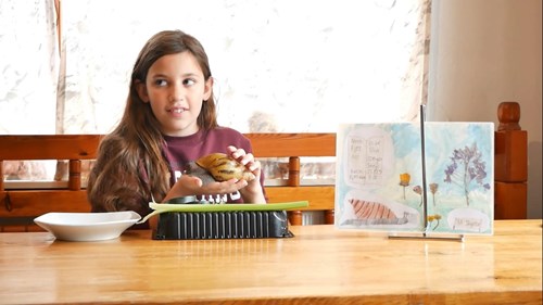 Se en af videoerne, hvor 11-årige Elia fra 4H Slagelse præsenterer sin kæmpesnegl Stribe: