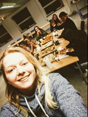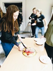 Efter en hyggelig aftensmad med pizza og sodavand gik pigerne i gang med dagens sidste punkt – lagkage-lavning af en usædvanlig slags.